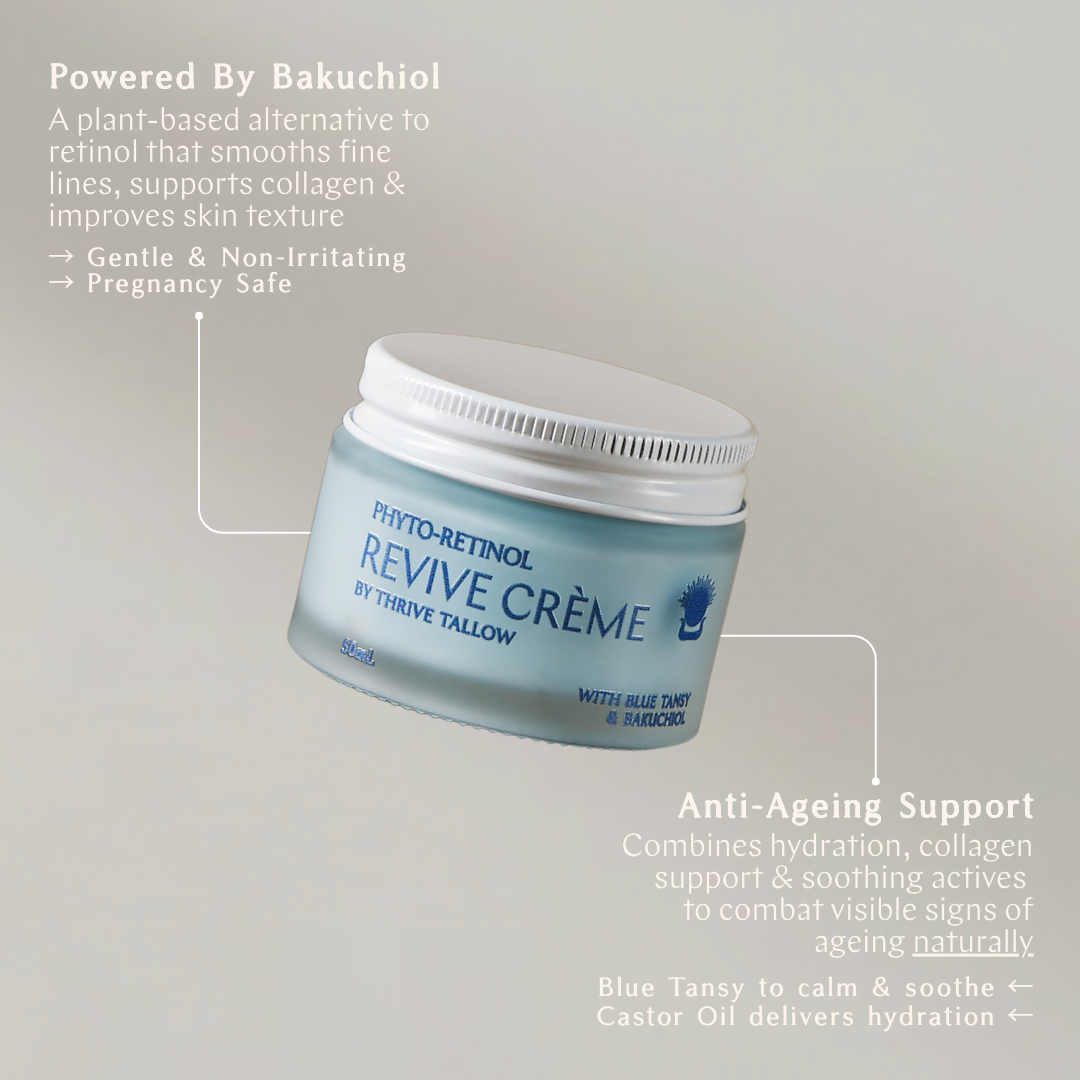 Turn back the clock, naturally. Our Phyto-Retinol Revive Crème is powered by Bakuchiol - a natural alternative to retinol that helps smooth fine lines, support collagen, and improve skin texture without irritation.